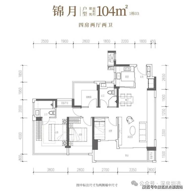 •锦月·建面约104㎡4房2厅2卫:南向四开间,6米阳台引景入室,自此生活融于风景