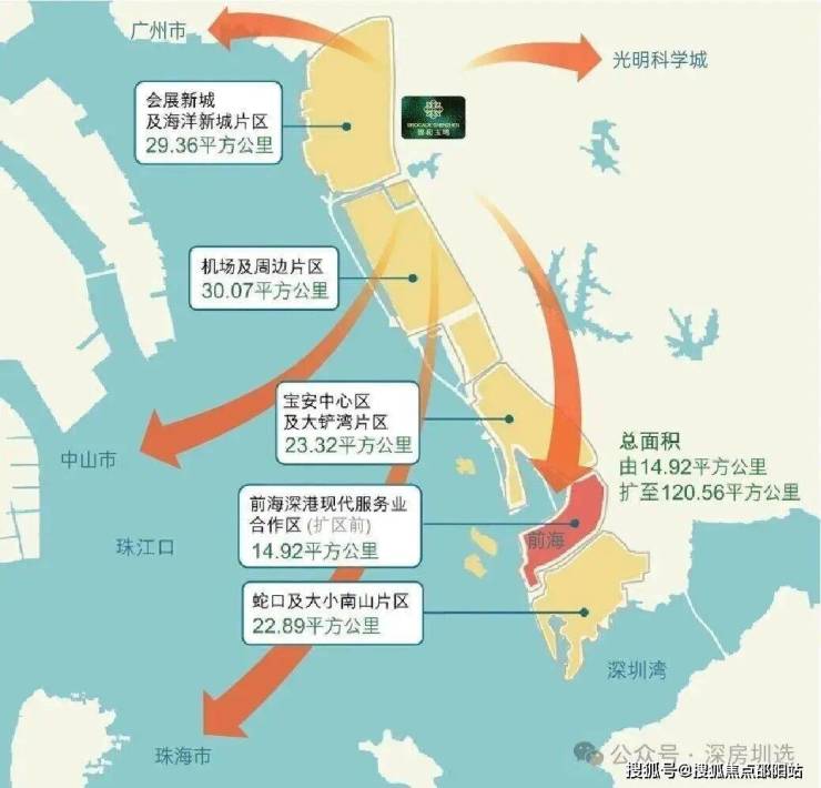 黄金内湾:前海扩容区,融入世界湾区第一站往南,是前海;往北,衔接东莞广州;往西,联动中山珠海;往东,携手光明科学城。根据《前海深港现代服务业合作区总体发展规划》,沙井,已经成为“三城一港”核心辐射区。