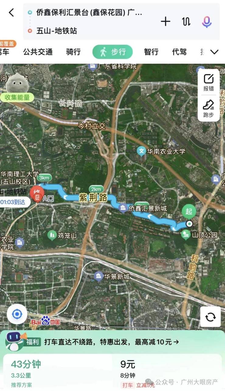 汇景新城距离地铁3号线五山站距离3公里多,距离最近的组团大概1.5公里左右。因组团较多,较大,所以其实地铁没汇景台什么事了,过去十多年也没因为交通没有地铁而影响这里的房价,未来19号线才会有地铁通到汇景新城,大部分住户都是选择自驾出行,平时开车出行还是比较方便的。