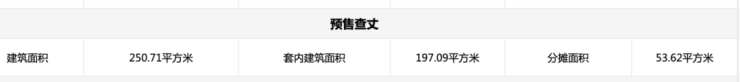 产品分布如下表所示:小区最主力的户型就是250平和300平的大平层,都超过1/3的比例,加上约20%的350平的大户型。