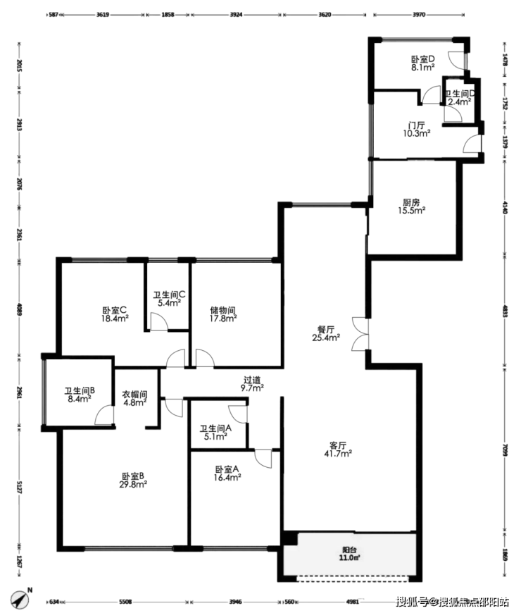 2、2A/B栋户型300平 4房2厅5卫 东南向