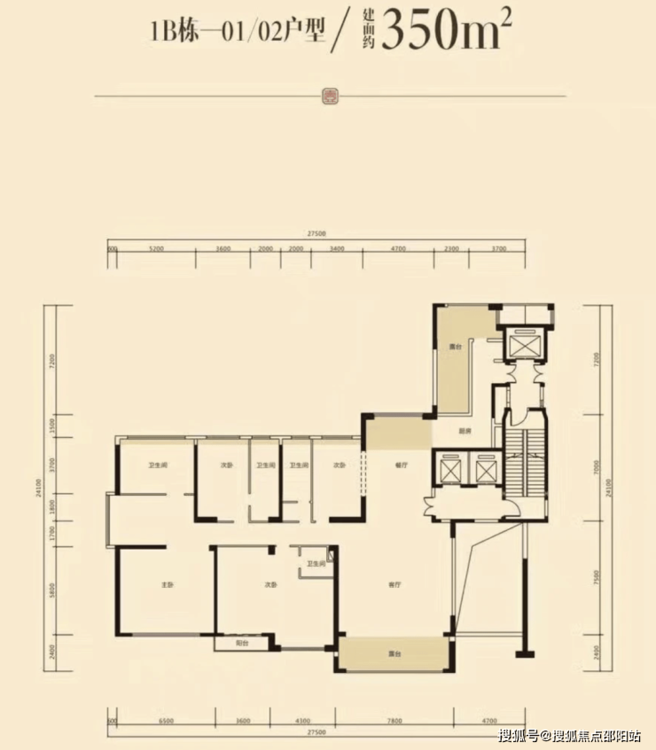 后排正中单位则为小区楼王——350平米5房+1工人房顶奢户型,客厅开间达到7.8米,主卧开间达到6.5米。