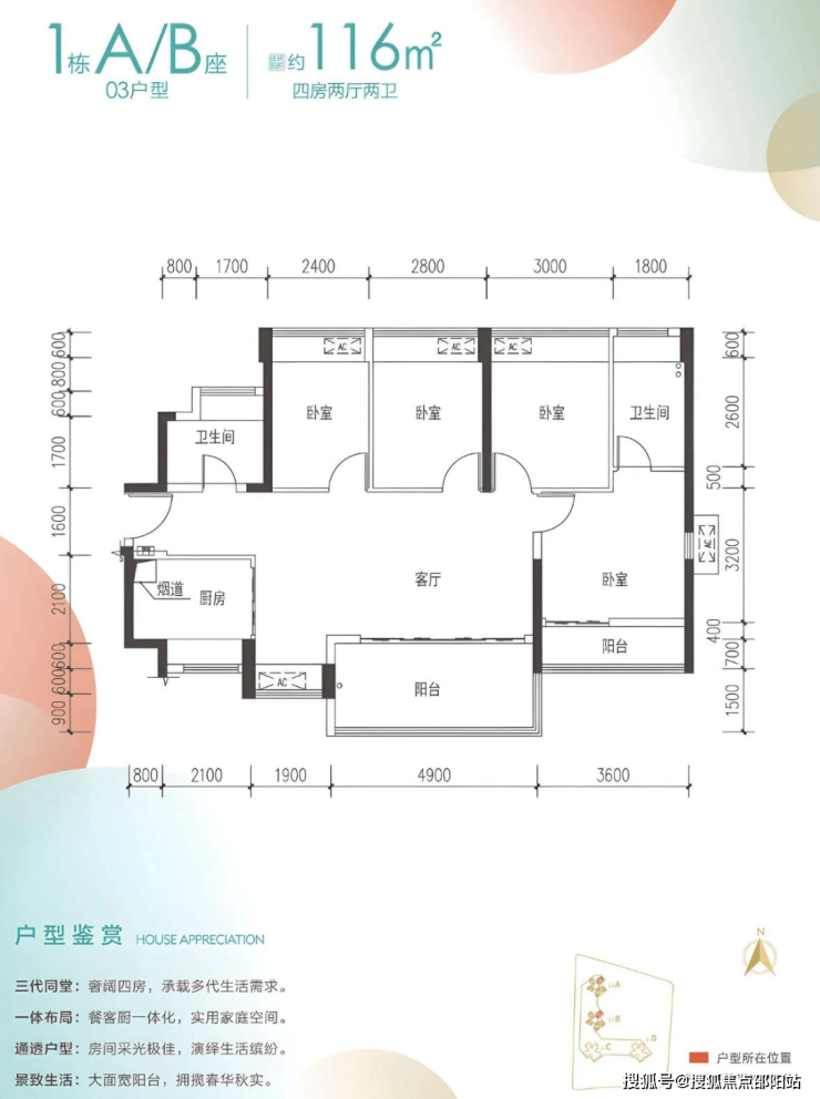 建面约116㎡4房2厅2卫