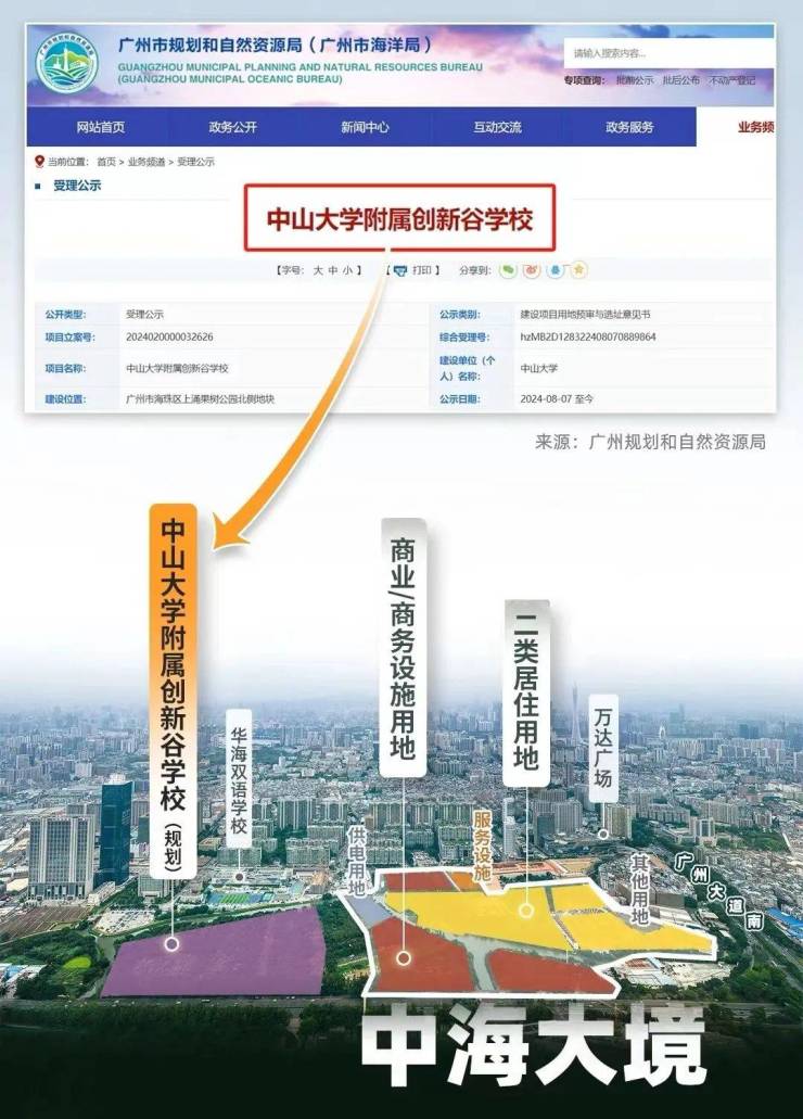 项目地块西侧规划了15年的教育资源地块,由政府引进中大附中办学(一个托儿所、一个6班幼儿园、一个18班小学和一个72班完全中学),要建成广州市综合排名前5的学校。