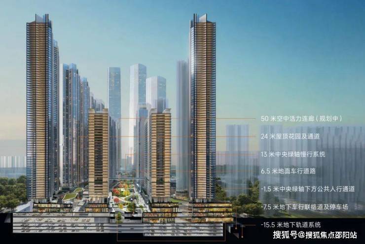 创新打造地上地下七重结构立体化交通系统,不同交通系统分层互联,人行系统、城市公共道路系统、地下轨交系统快速接驳,最大程度实现人车分流,科学化疏解交通压力。