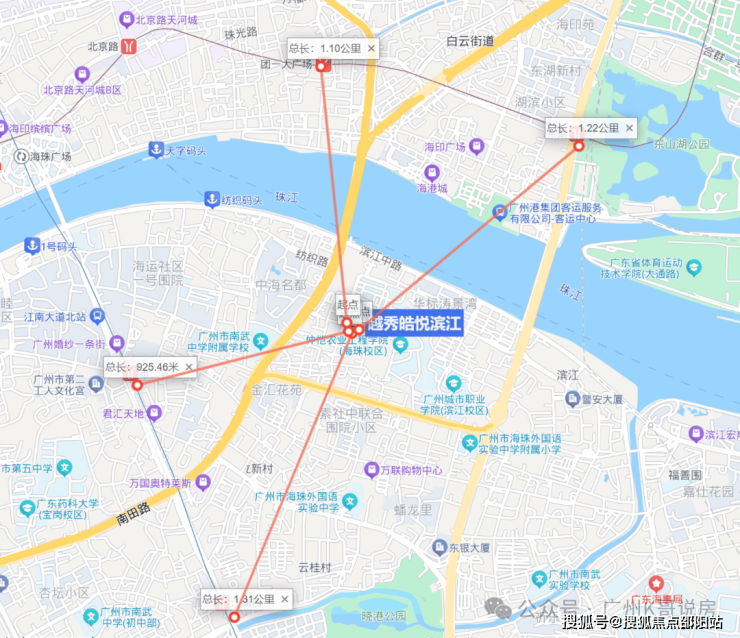 地铁:地块其实不近地铁站,最近2号线市二宫站距离约1.2公里,需要接驳,公共交通出行有壁。1站江南西/海珠广场,2站公园前/江南西;东侧10号线滨江东站在建中,未来可实现1站东湖,2站五羊邨,3站广州大道中。