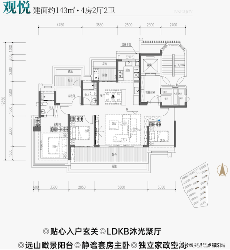 六、70年产权住宅、独体独户纯板楼、270°全景飘窗、超高户型得房率113-143㎡三房至四房、独梯入户板楼设计、270°全景飘窗、南北双阳台、超高得房率、体贴入微的精装标准,超高性价比尊享豪宅体验。