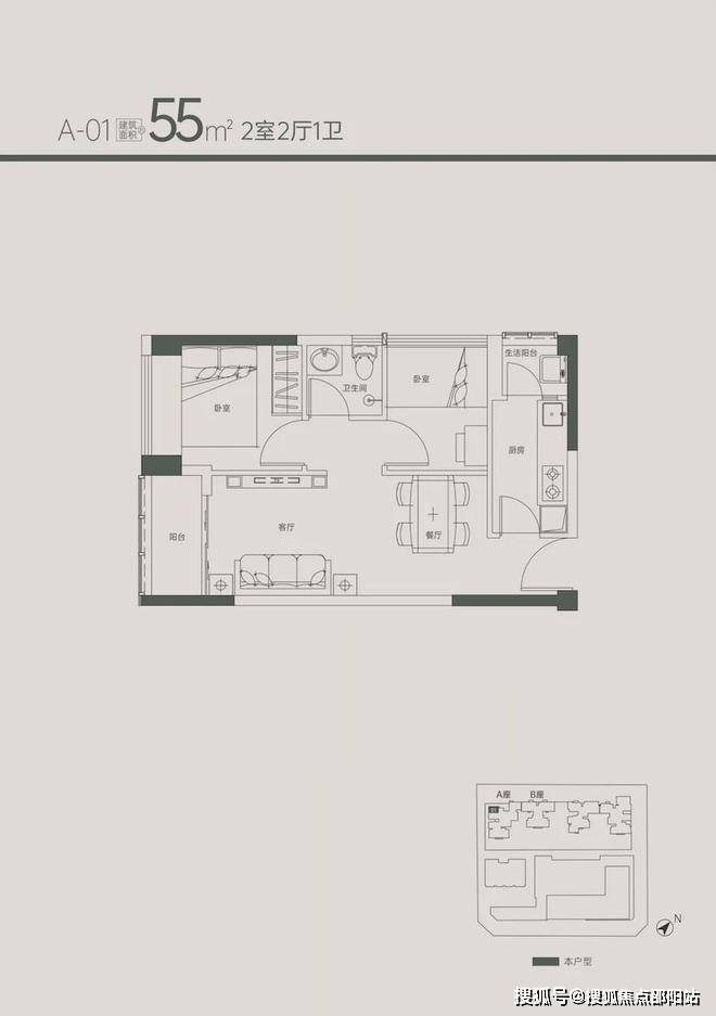 这种面积段产品如今在新盘市场上很少见到做到两房+两阳台的,对于小户型来说多个生活阳台是大加分项。