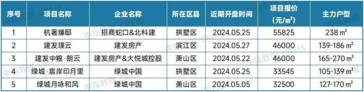 表:2024年5月杭州典型新房项目数据来源:中指数据CREIS(点击查看)市场监测:https://www.cih-index.com/