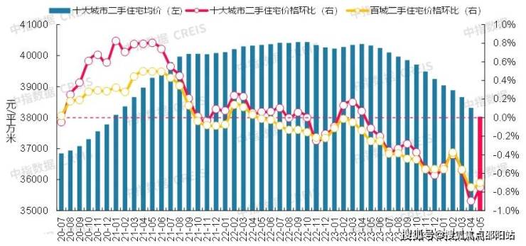 根据中国房地产指数系统百城价格指数,2024年5月,百城二手住宅均价环比下跌0.70%,跌幅较4月收窄0.05个百分点;同比下跌5.80%,跌幅较4月扩大0.42个百分点。5月,十大城市二手住宅均价环比下跌0.75%,跌幅较4月收窄0.14个百分点;同比下跌5.70%,跌幅较4月扩大0.60个百分点。