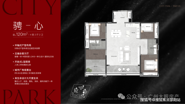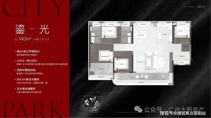 该栋为25层高,两梯三户设计,只有两个面积段,120㎡和140㎡,户型做得不错,在景观展现上用了功,极大程度去放大观江面,比方说超宽阳台、L型主卧转角飘窗、客厅预留观景飘窗等等,主打改善户型,2025年9月整体交房
