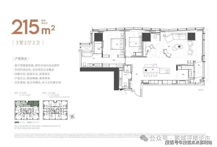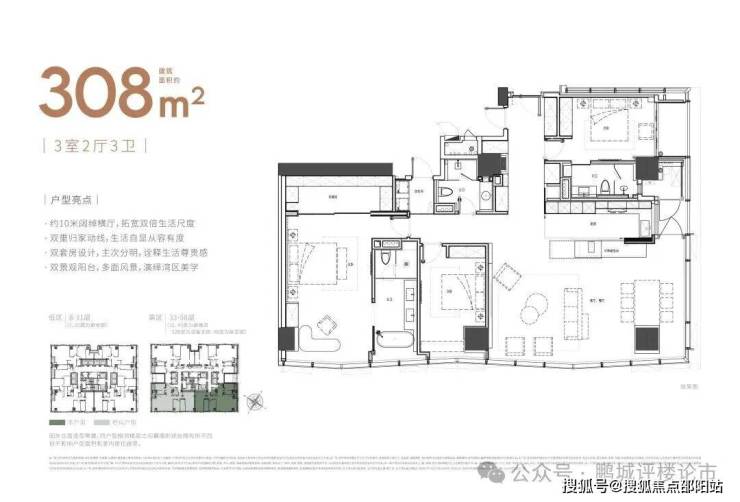 大平面大尺度定位,层高约3.6米,横厅设计确保奢阔观景面,全户型纵享环幕视野。项目打造建面约215-620㎡纯粹品质公寓,顶层为建面约1270㎡公寓产品。