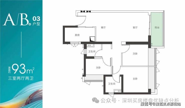 户型鉴赏【82-115m²】A/B座02户型-建面约82m² 三房两厅一卫