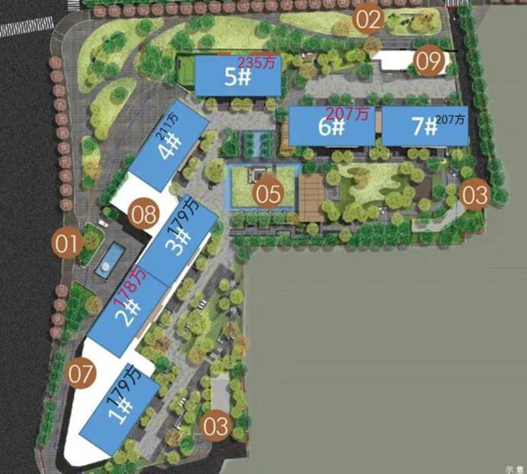 楼盘一共由7栋楼组成。全部都是一梯一户的纯板式楼体,南北对流,私密性极好。