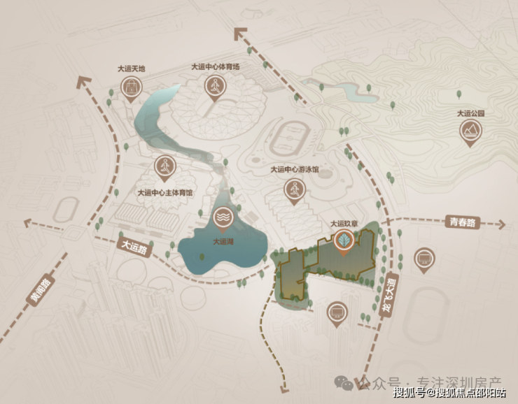 坐享大运公园(大运公园总用地面积约418万平方米,规模超伦敦海德公园,总投资约2.7亿)龙城公园(约189万㎡),环境优美,绿化率超50%,绿化率是福田中心的5倍、前海中心的4倍,是深圳首个“国家级生态示范区