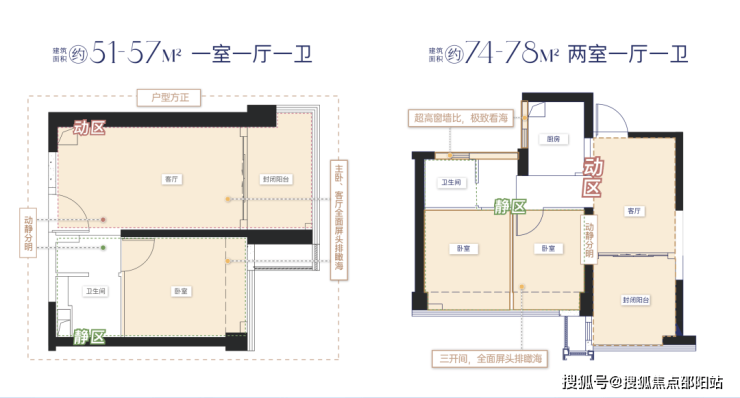 旅居 / 单身群体:54-108㎡精装小户型,70 年产权住宅,近澳门海景,低总价易入手。