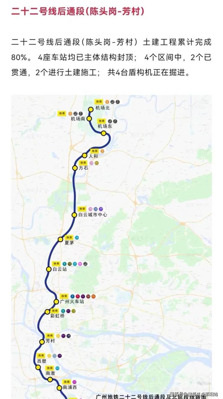 22号北延线,广州南北大动脉,时速达160公里,贯穿空港、白云棠溪、广州火车站、南站等7大枢纽,全线换乘高达16处之多,无缝接轨广州全市。