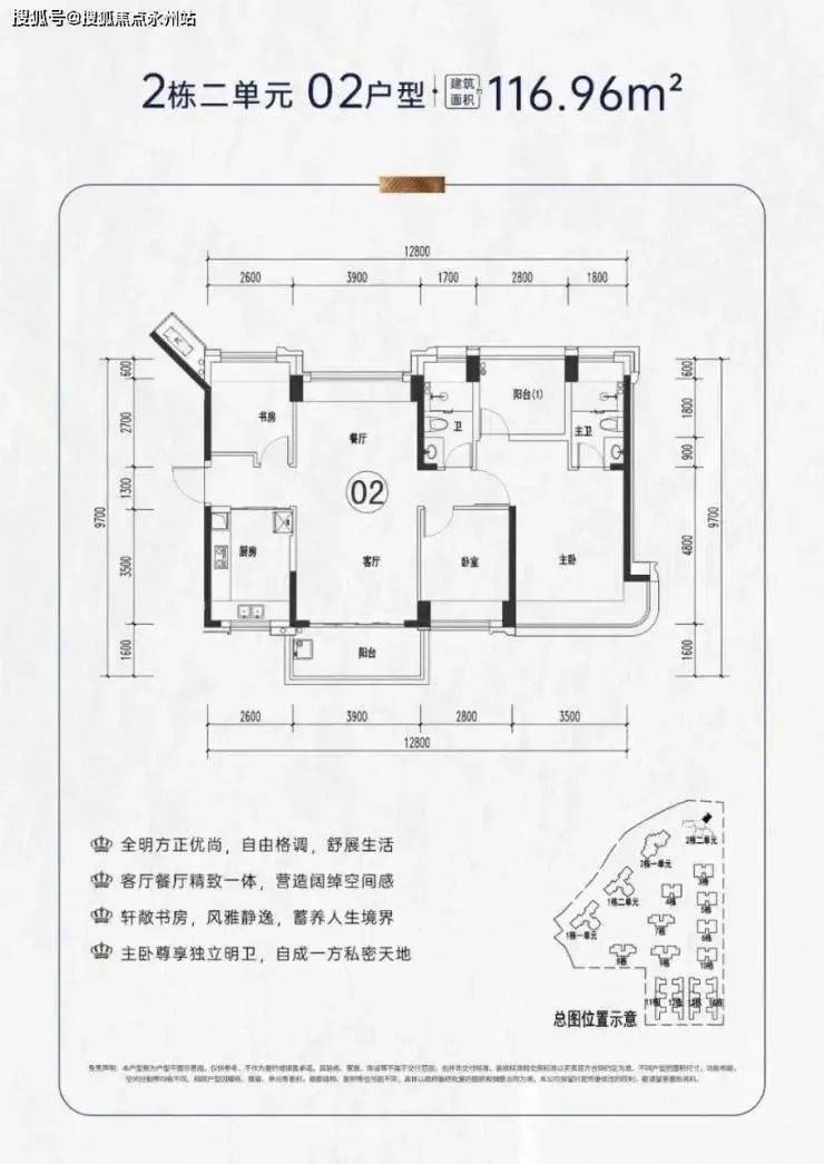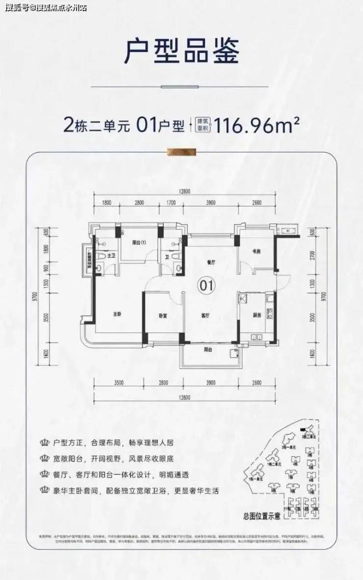 项目户型介绍:社区产品面积段包括112-116-120㎡4房2卫,195㎡4+1房4卫,本次推出116户型4房2卫