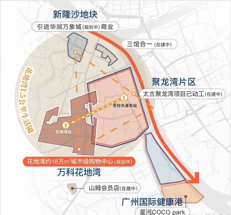 3座潮奢商业坐标,全国首座双太古[在建中]、26.9万㎡华润万象城[在建中]、理想花地18万㎡城市级购物中心[规划中],世界级商圈未来触手可及。
