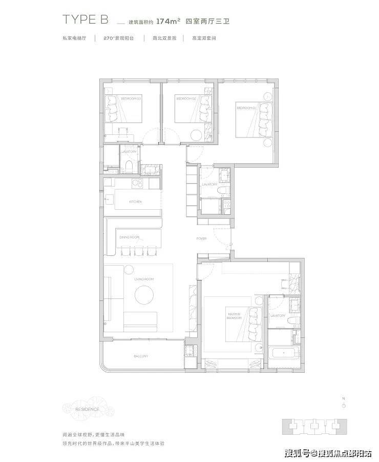 【190㎡双阳台户型】观景双阳台-高定双套间-私家电梯厅-双洄游动线