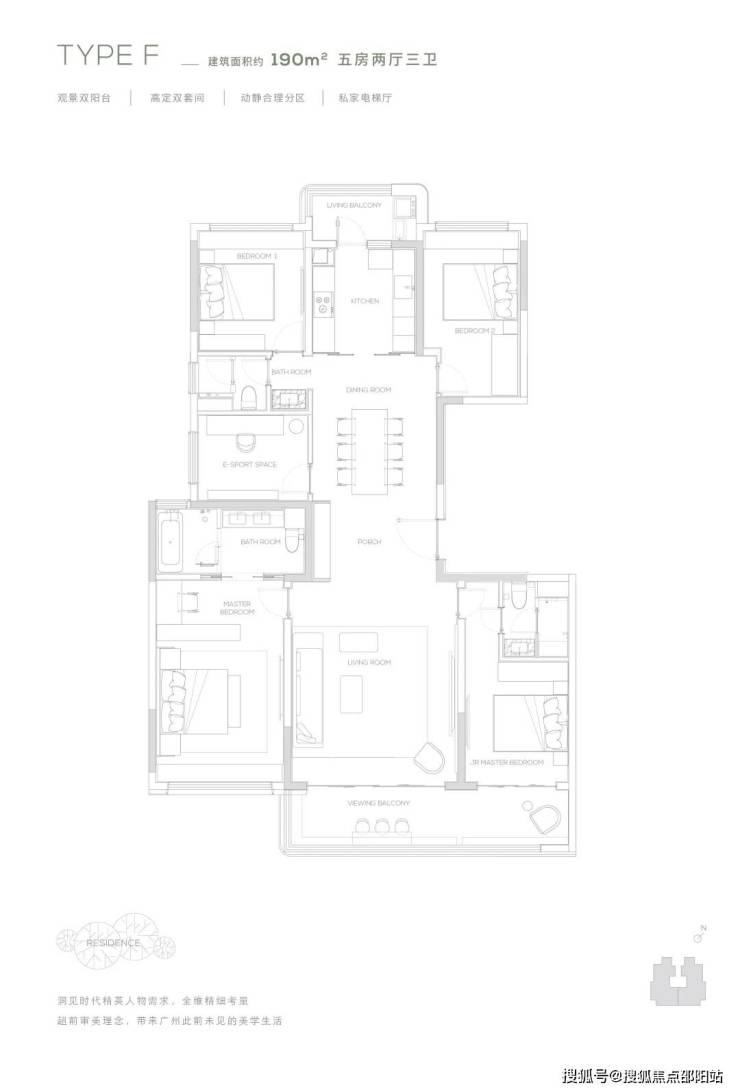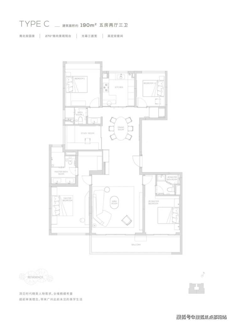 【190㎡户型】南北双园景-光幕三面宽-270度超广角观景视野-经典四叶草布局