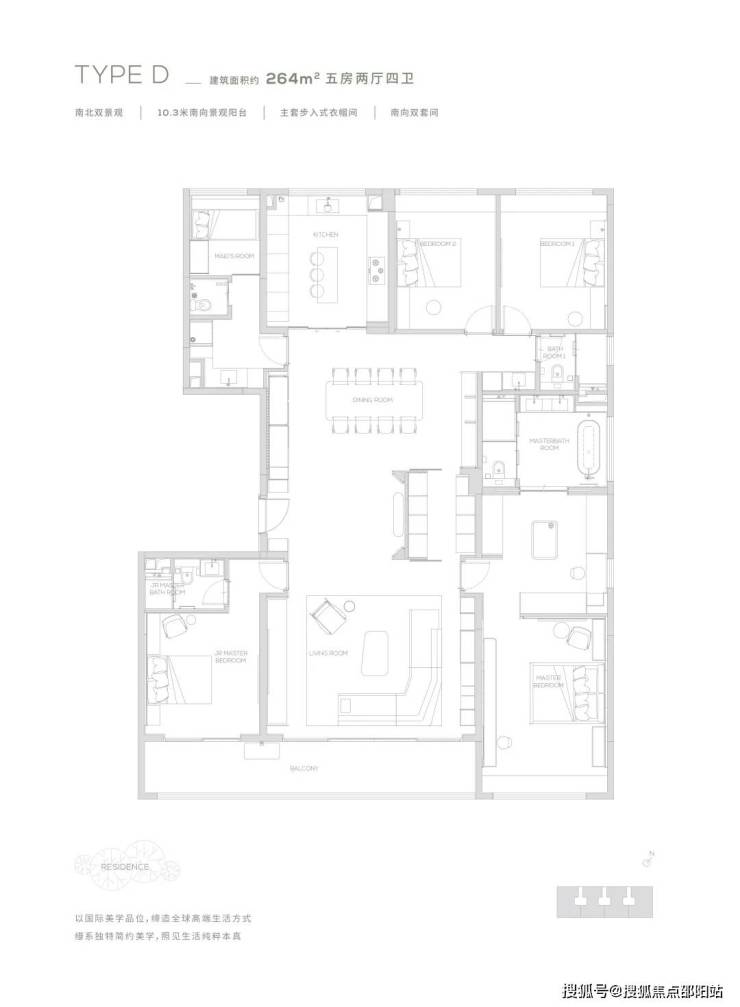 【264㎡户型】10.3米南向景观阳台-南北双景观-主套步入式衣帽间-独创灵动岛设计,生活场景多重切换