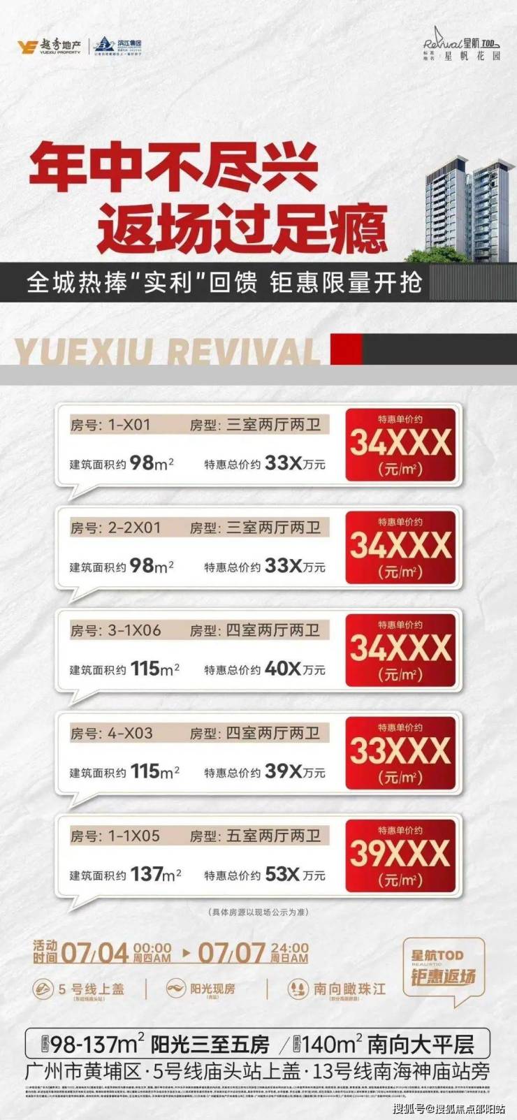 越秀滨江星航TOD位于广州市黄埔区黄埔东路2009号,是一个集高端住宅、便捷交通和丰富配套设施于一体的综合性社区。该项目由广州樾富房地产开发有限公司精心打造,提供88-141平方米的三至五房户型,满足不同家庭的需求。目前尾货清盘阶段,部分房源单价低至2.8万元/平方米,为购房者提供了难得的捡漏机会。