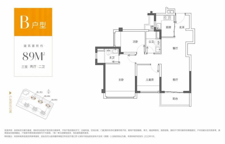 89㎡的3房2厅2卫,设计的是经典竖厅格局,客厅3.3米开间,S墙体设计预留双开门冰箱位,动静分区,三开间朝南,L型厨房,3个卧室分别做到了主卧14.15㎡/次卧8.37㎡/次卧8.3㎡(包含墙体飘窗),得房率79.77%(不含赠送),阳台进深1.5米,西南或东南朝向。