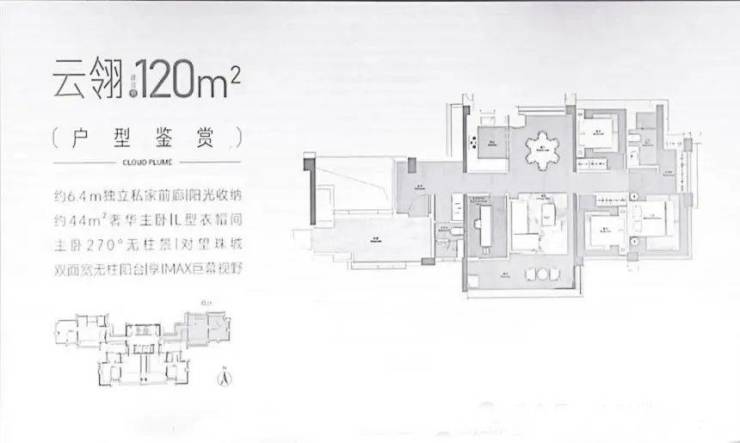 120㎡边户户型,南北对流双阳台设计主卧配置 270° 环幕飘窗可俯瞰城市景观;次卧连接空中花园阳台实现 "室内空间室外化";