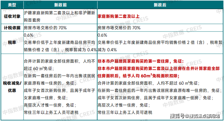 本次为衔接优化住房限购政策,对符合条件的非本市户籍居民家庭购买的第一套住房暂免征收房产税;购买的第二套及以上住房在合并计算家庭全部住房面积后,给予人均60平方米的免税面积扣除,将进一步降低购房的房产税支出,促进改善性住房需求释放。
