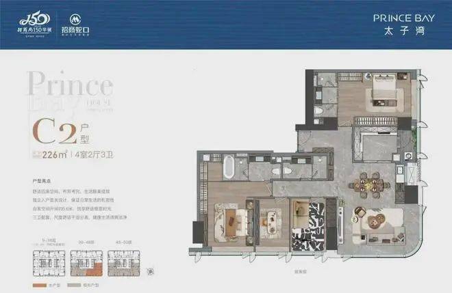 太子湾・泓玺的住宅产品堪称精品,主力户型涵盖 [最小户型面积]-[最大户型面积] 平方米,从精致的两居室到宽敞奢华的四居室,满足不同家庭结构的居住需求。每一个户型都经过精心设计,空间布局合理,充分利用每一寸空间。客厅宽敞明亮,与餐厅相连,形成开阔的公共活动区域,适合家庭聚会与朋友社交。卧室均配备全景落地窗,将室外的无敌海景引入室内,让业主仿佛与大海亲密相拥。项目在装修选材上更是精益求精,选用国际一线品牌的高端建材与家居用品,从地板到卫浴,从厨房电器到门窗五金,每一个细节都彰显品质。同时,引入智能科技系统,实现智能家居控制,为业主带来便捷、舒适、安全的居住体