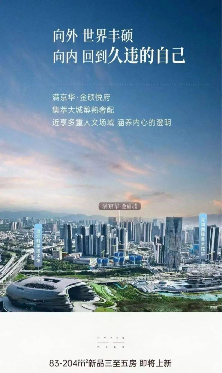 满京华金硕悦府,位于深圳光明中心区核心位置,紧邻光明科学城这一国家级科技创新枢纽,坐拥科学公园首排景观(占地约208万平方米),是光明科学环廊的重要组成部分,片区定位为深圳北部新中心,依托光明科学城的科研产业规划,未来将聚集大量高端人才与资源,区域发展潜力突出。