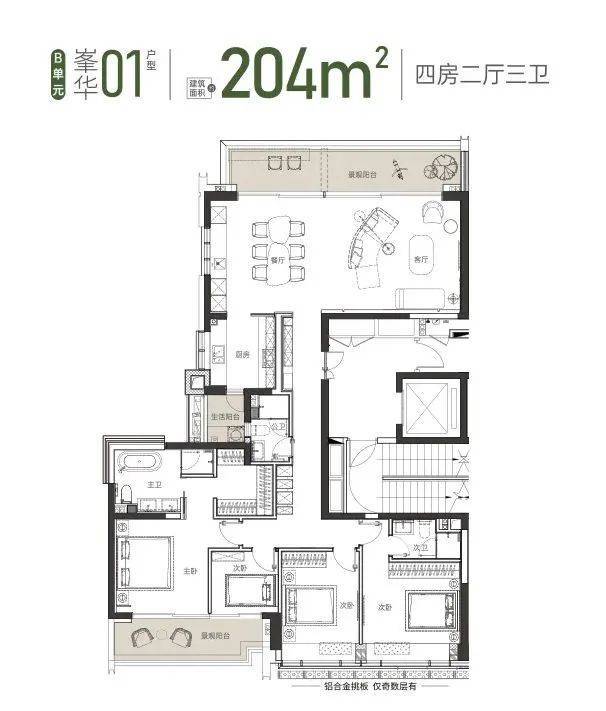 建面约 204 ㎡ 01户型 4房2厅2卫
