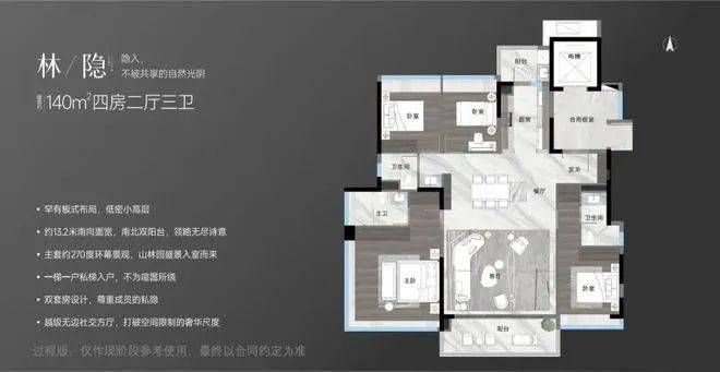 在广州城芯,建面约 140㎡「林隐」户型以稀缺板式结构与尊崇配置,重塑舒居典范。作为市场少见的一梯一户设计,归家即享私密专属空间,仪式感与安全感兼具。双主卧套房布局,满足多元居住需求,全明卫浴设计让阳光与清风常伴左右;南北双向景观阳台,一面揽四季园林绿意,一面拥城市璀璨风光,形成通透开阔的空间格局。于此,每一寸空间都诠释着生活的精致与从容,打造出繁华都市中静谧栖居的理想之所。