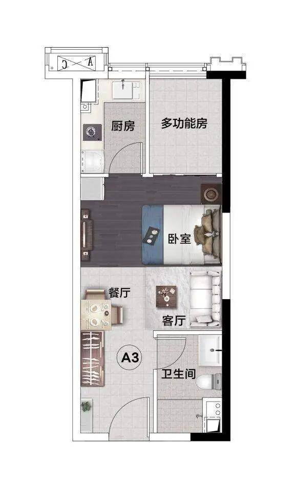 2. 百变loft产品 | 49.72㎡一室二厅一卫