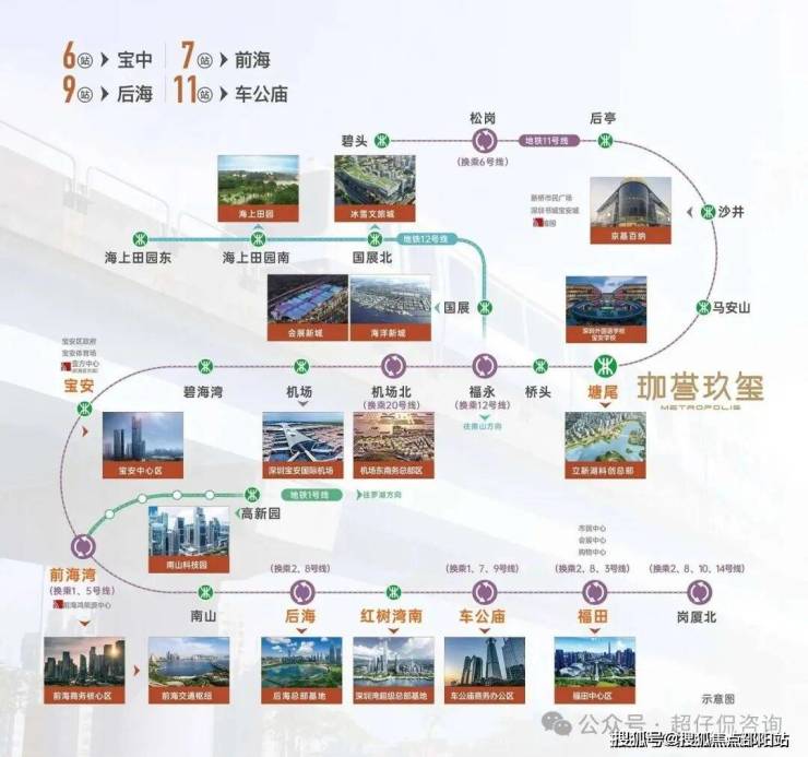 地铁:无缝连接11号线塘尾站,6站到宝中(22min),7站到前海(26min),9站到后海、11站到车公庙,便捷到达南山、福田。