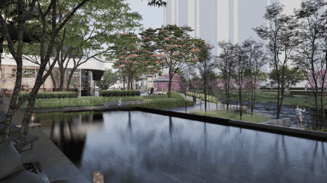 南区为滨水商业,是逛街也是逛公园,透着自在气息和时尚烟火气。