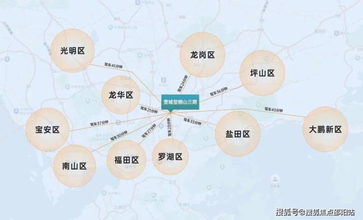 另外从玺樾山出发,去往福田约27分钟,罗湖约23分钟,南山约30分钟,龙岗中心城约24分钟,盐田约33分钟,龙华约21分钟。