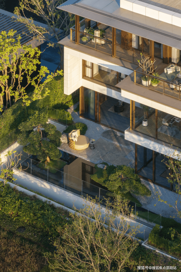 每一户均配备近6米挑高的超大空中庭院,带来约270度的景观视野,部分户型庭院面积高达约50㎡,搭配上下错层、约1.2米外飘挑檐的设计,守护居住私密性。