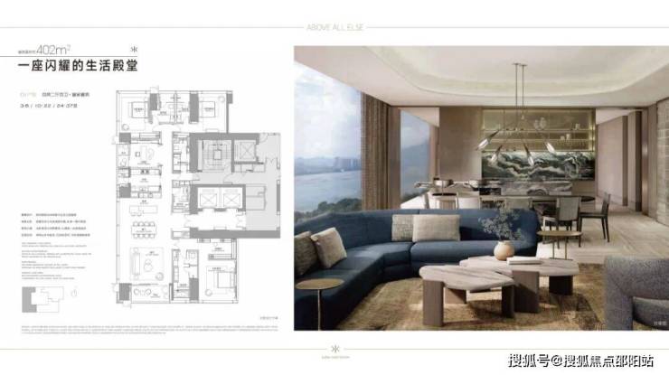 【户型规划】由4栋51至63层3.6-3.9米层高的纯居住奢装交付地标、两栋4.5米层高的小高层,35栋独栋,全景幕墙、宽景阳台。