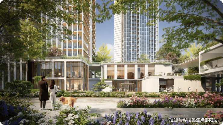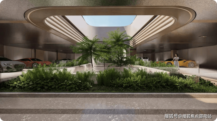 首层谧邸之厅,庭院围合出静谧绿洲,阔绰车马院与酒店式落客区以从容礼序迎接归家;二层悦己空间,环廊与健身空间为专属能量场,未来通过约2公里慢行长廊衔接城市艺术与商业;三层全龄怡乐,天际花园,融汇浮岛廊架、亲水乐园与萌宠聚场营造出被艺术环绕的全龄欢聚场。花园局部效果图