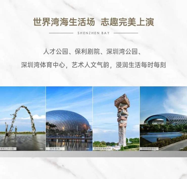 人文生态:顶级闲娱配套:保利剧院、人才公园、深圳湾体育中心、深圳湾滨海休闲带,另外有深圳湾广场(在建)、东角头歌剧院(待建)、深圳科技生活馆(规划)、深圳创意设计馆(规划)、南山少儿图书馆(规划)城市级配套咫尺尽享。