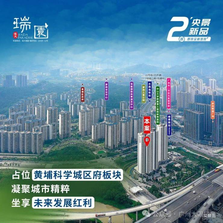 佳大瑞园位于黄埔区科学城区府板块,正好在区府的核心板块,与网红大盘科城山庄,仅一路之隔,作为整个科学城唯一2字头精装项目,是科学城板块“上车门槛”最低的一手盘。