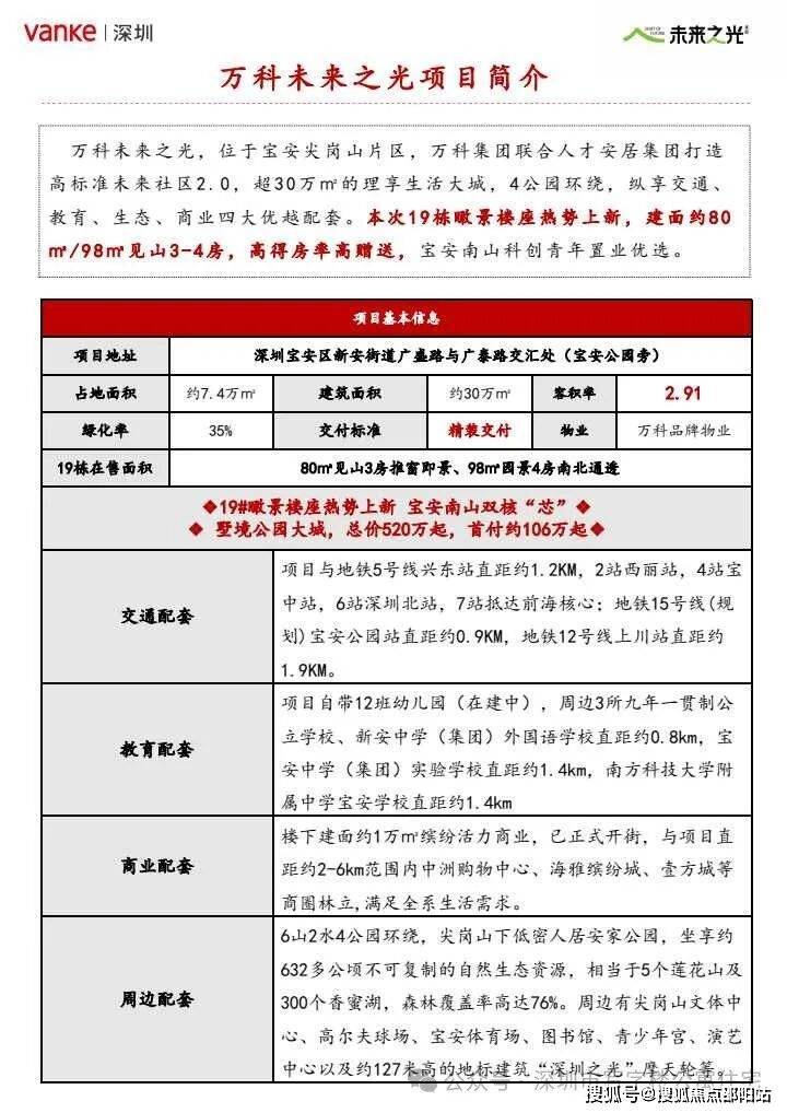 信息仅供参考:本资料所载一切文字、图片及信息仅供参考之用,不构成任何要约、承诺或建议,请务必以万科未来之光项目实际情况及开发商官方发布文件为准。