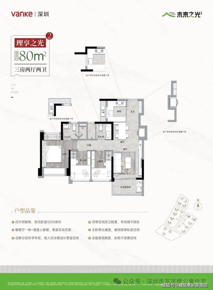 一步到位万科精研好产品建面约73-125㎡三至四房无论您是三口之家、四口之家、三代同堂都可以找到相应优选未来理“享”,触手可得!