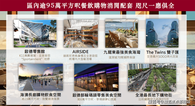 香港柏蔚森商业配套丰富,已开业的 Airside、MegaBox(含超市、影院、餐饮)及 1 公里内德福广场、淘大花园等商圈满足日常需求;在建 K11 启德零售馆将添高端体验,未来 1500 米地下商业街待建,步行十多分钟可达的土瓜湾亦有多样商铺选择。