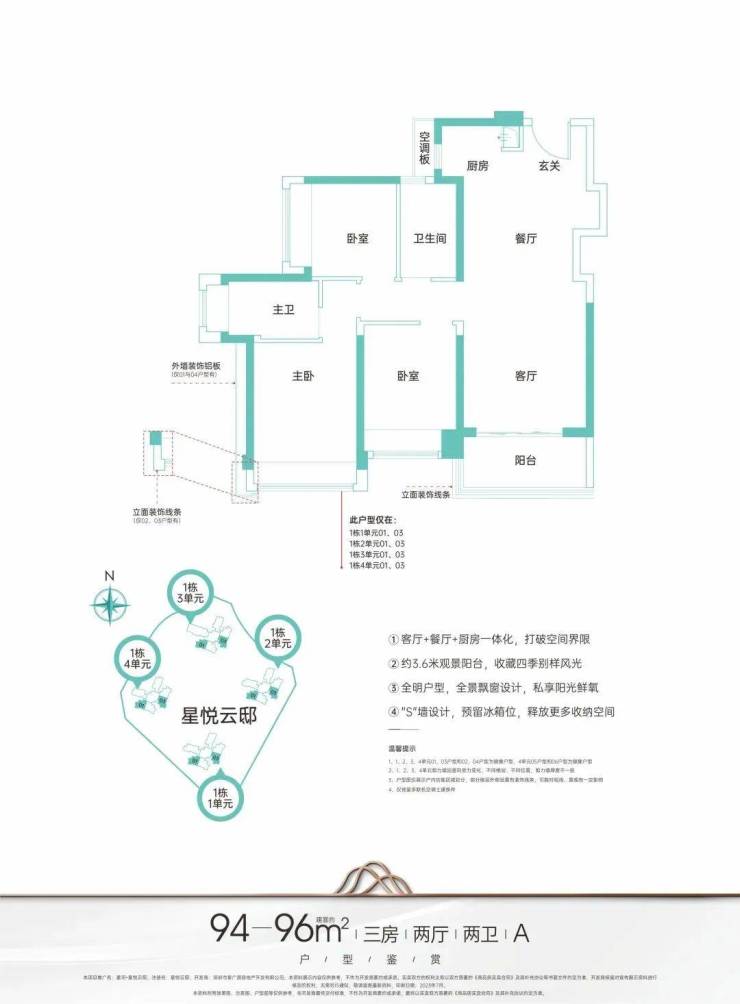 【质感的人居-六维社区】主力建面约95-124㎡三至四房,精工匠造悦居体系