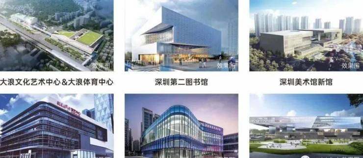 "五馆一体,双子星文体中心建设中,约1公里范围享受大浪文化艺术中心和体育中心;约10公里范围连接深圳第二图书馆、美术馆新馆、演艺馆、展览馆和龙华市政四馆,简上体育综合体、深圳书城和龙华文体中心。"