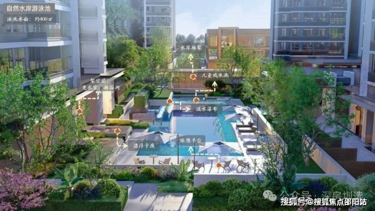 【自然水岸游泳池】:约400㎡无界亲子多元互动型泳池