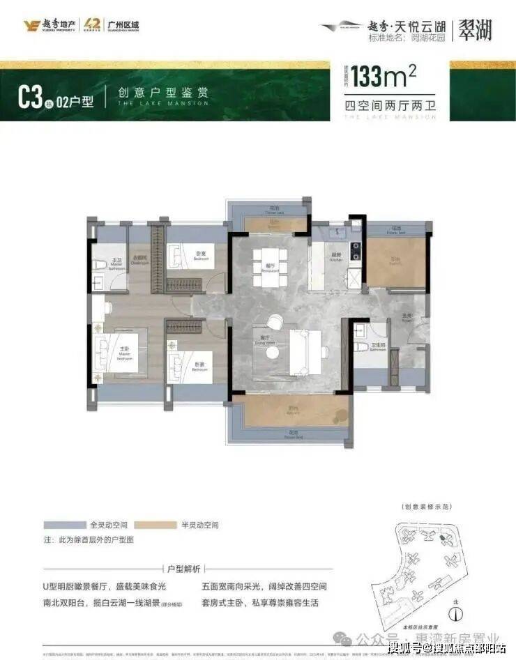 南向双瞰景阳台,尽揽四时园境,U型明厨、瞰景餐厅,优雅美味时光